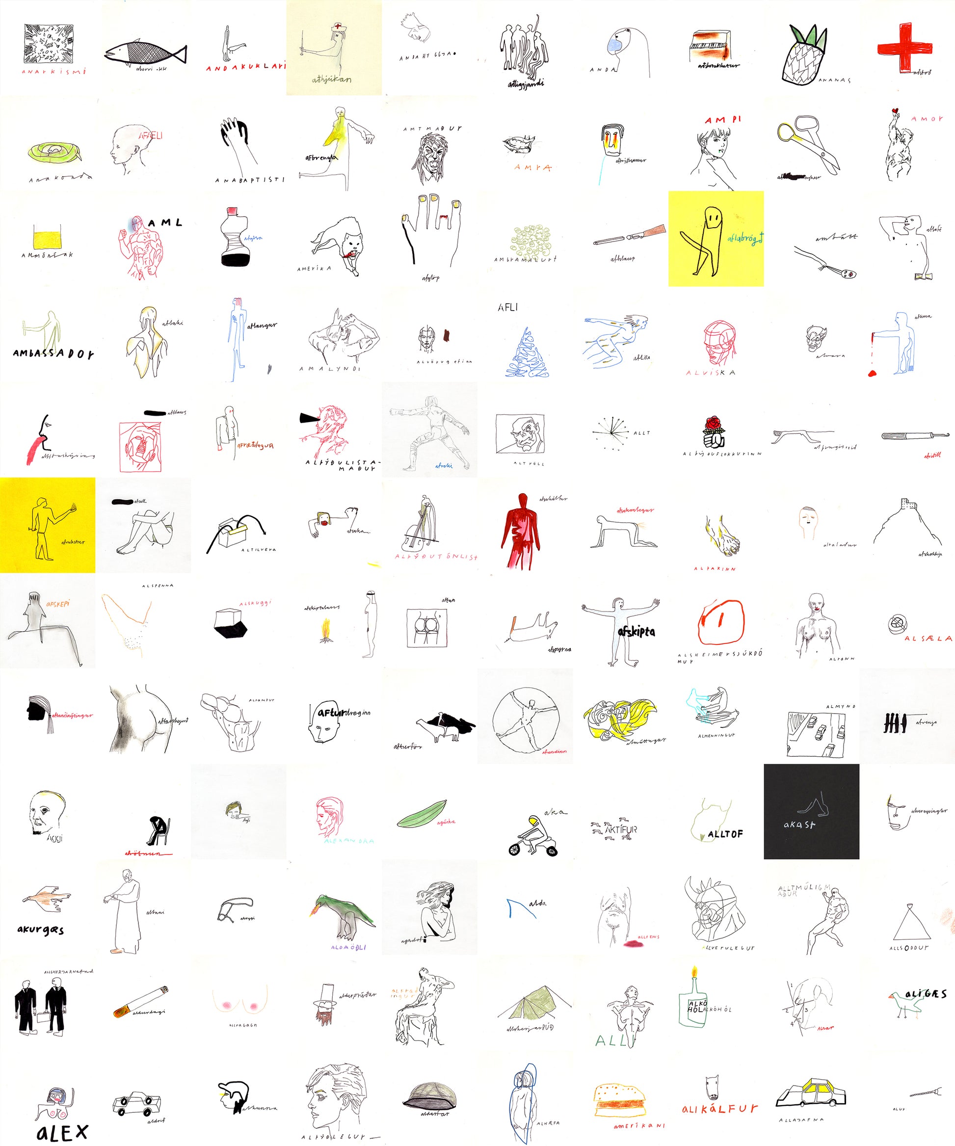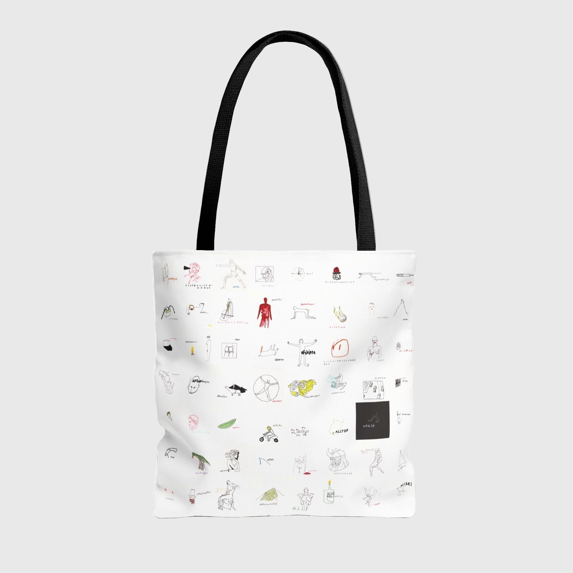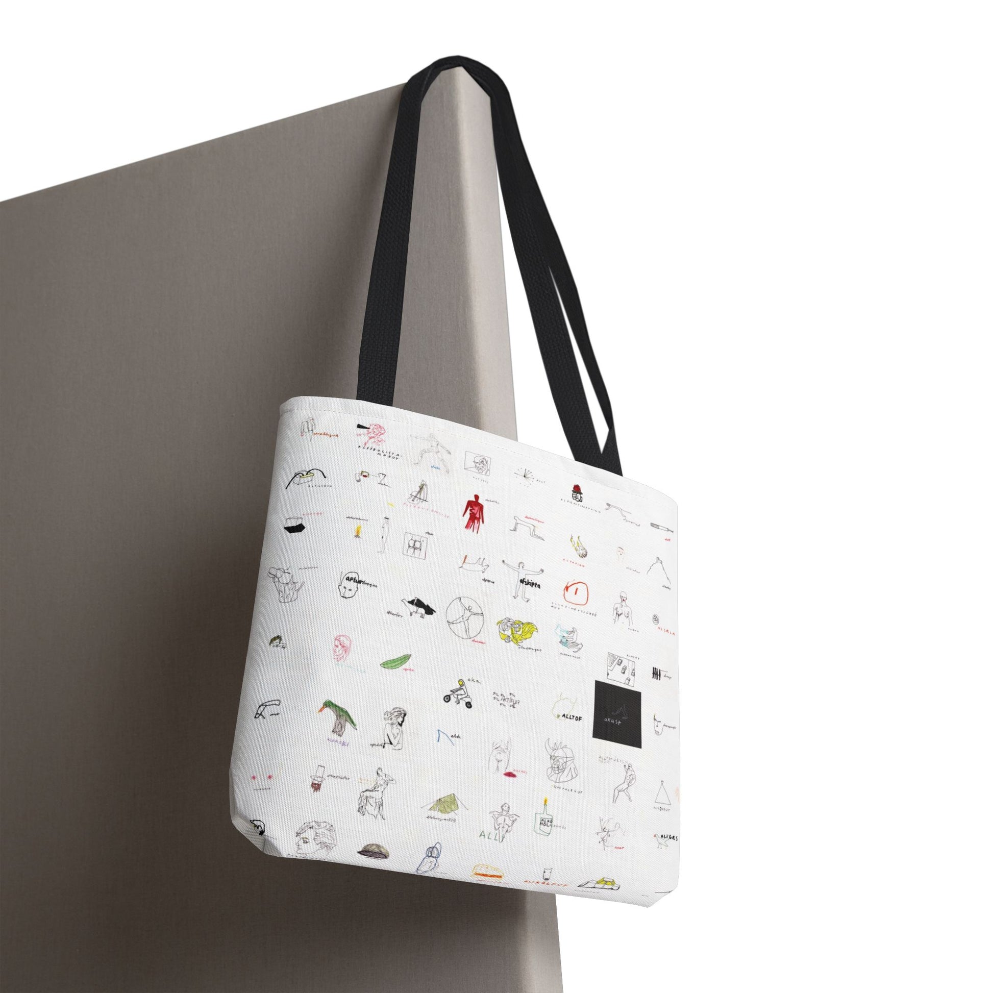 This tote features a curated selection of sketches from artist Halldór Ragnarsson’s A-Project, a collection born from his decision to draw every word beginning with the letter A in the Icelandic dictionary.